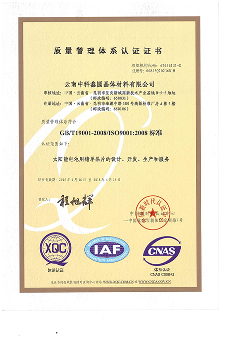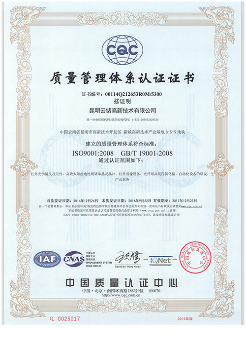 云鍺質量管理體系認證書(中文)