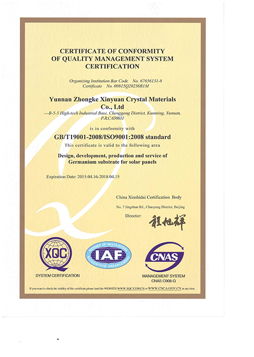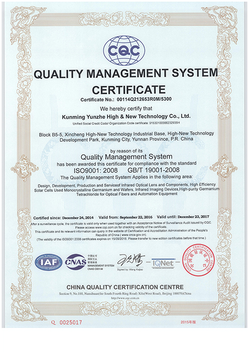 云鍺質量管理體系認證書(英文)