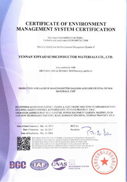 環(huán)境管理體系認證證書(附件中文)